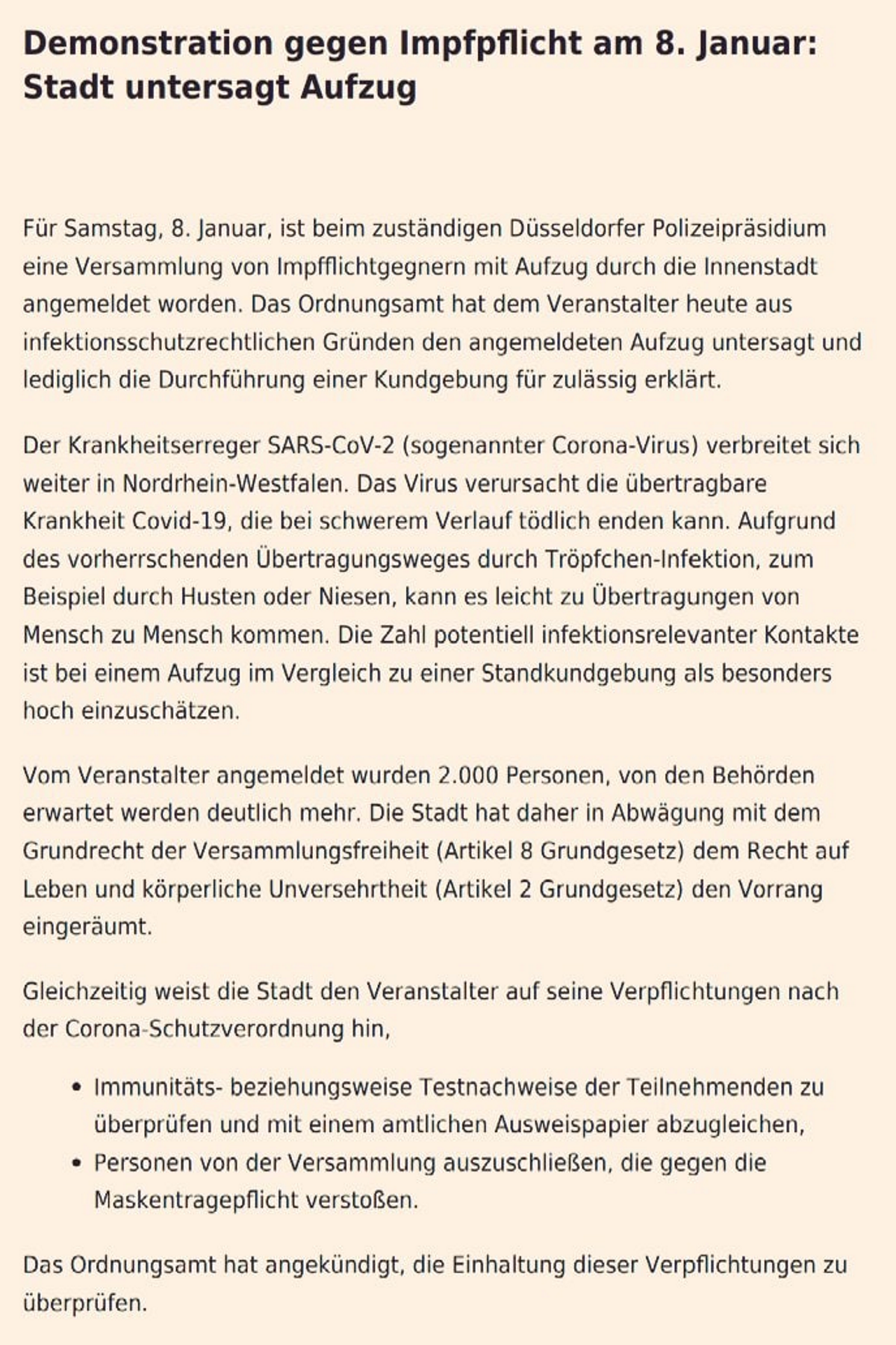 Zunächst wird ein Umzug untersagt, aber eine Versammlung erlaubt. Ob das Virus den Unterschied kennt? Warum sollte die Ansteckungsgefahr bei einer Versammlung wesentlich geringer sein, als bei einem Umzug? Das dürfte kaum glaubhaft oder nachvollziehbar sein.